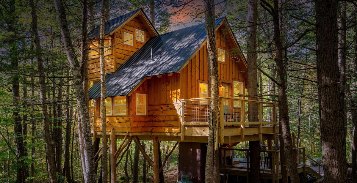 This authentic, luxury treehouse was designed by B'Fer Roth, DIY Network TV host of The Treehouse Guys and built by the Treehouse Guys. Nestled in the woods on a quiet, private rd with no neighbors in sight, the treehouse is just 15 minutes to Sunday River Ski Resort, 5 minutes to Mt. Abram and 10 minutes to downtown Bethel. The treehouse is abutted by 626 acres of Bucks Ledge Community Forest (7 miles of hiking/snowshoeing trails accessible from the treehouse).