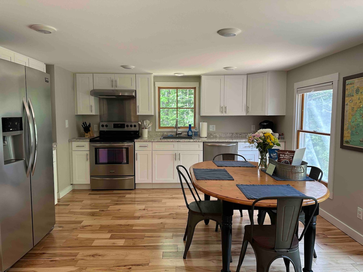 Escape to your perfect Midcoast Maine base camp—just 5 min to Damariscotta/Newcastle & 1 hr 6 min to PWM. Enjoy forest views, modern comforts, and easy access to the coast. • King bed + ensuite • Fully equipped kitchen + charcoal BBQ • Vaulted ceilings, wall of windows, open layout • Private deck, fire pit • WiFi, laundry, parking • Generator (2024) for year-round comfort Ideal for foodies, outdoor lovers & oyster fans!
