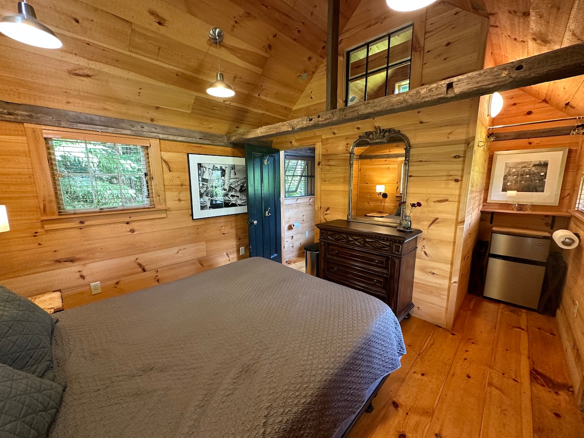 This charming cottage is thoughtfully furnished, it's your home away from home! Clean and cozy, one bedroom with queen size bed and full kitchen. Sit in front of the gas fireplace or on your own private deck overlooking the 105 acres of Black Brook Preserve. Take a hike, snowshoe or cross-country ski right outside your door. We now have new sofa, bed, refrigerator, stove, as well as shower and bathroom flooring.