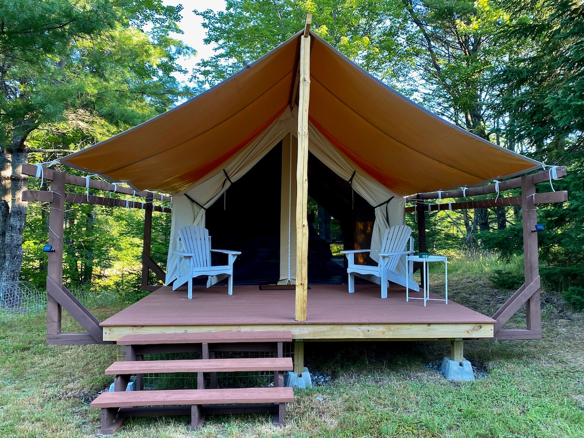 Glamping Downeast - Relax after exploring Acadia in a luxury Glamping Tent. With a King Bed, an ensuite bathroom with a hot water and a flush toilet, and a fabulous view, we are located in the heart of Downeast Maine. Deep in the woods and at the edge of the lake, you will feel like you are a million miles away yet we are just 10 miles from historic Ellsworth and another 18 miles from Bar Harbor/Acadia National Park. The perfect basecamp for exploring Acadia or connecting to nature.
