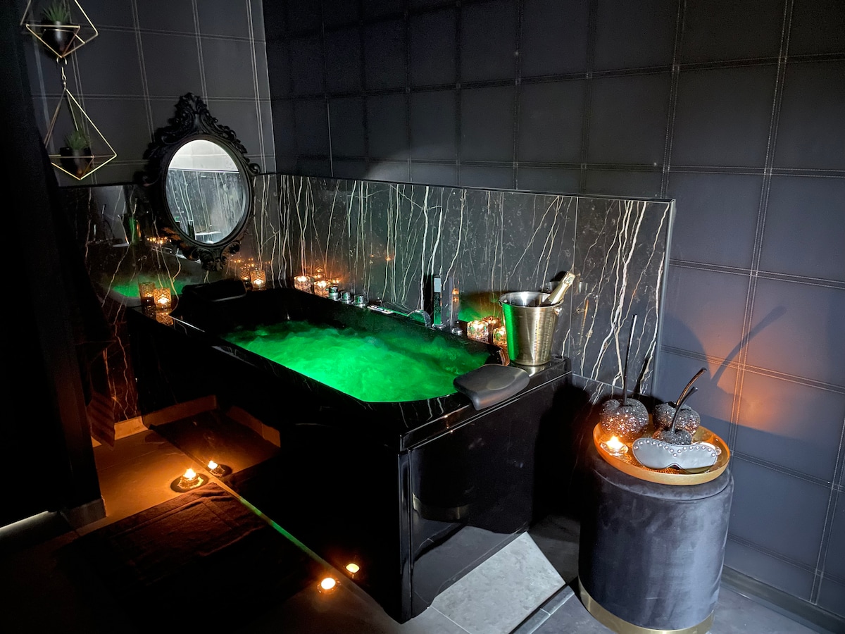 À la campagne Lieux calme,élégant et douillet aux portes de Valenciennes! Jeux,ambiance coquine,table de massage huile aromatiques..laissez-vous guider par vos sens dans un cadre chic et érotique Propriété privée, place de parking. -Somptueuse salle d’eau,douche, évier,sèche cheveux,linge,peignoir.. -Vrai Jacuzzi avec TV -Netflix/prime vidéo -WIFI - Lit King size,miroir éclairé sur mur,plafond+ cheminée -cuisine équipée -café,thé,chocolat -petit déj:30€/2 sur demande -Extérieur privatif bbc