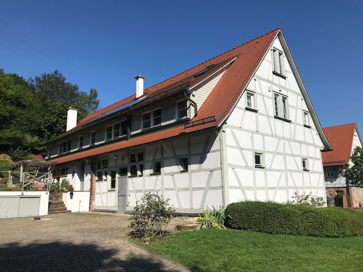 Sehr ruhig gelegene Wohnung am Waldrand im kleinen Ortsteil Altneudorf des Odenwald-Städtchens Schönau im Kreis Heidelberg gelegen. Auf 50qm bieten wir eine Unterkunft mit gemütlicher Wärme durch den enthaltenen Kamin. Die Gegend bietet zahlreiche schöne Wanderwege, Burgen und andere Ausflugsziele, etc. In den Sommermonaten (Juni/Juli/August/evtl. Sept.) kann unser eingelassener Pool (beheizt durch Solar - Wassertemperatur ist also abhängig von den Sonnenstunden) im Garten genutzt werden.