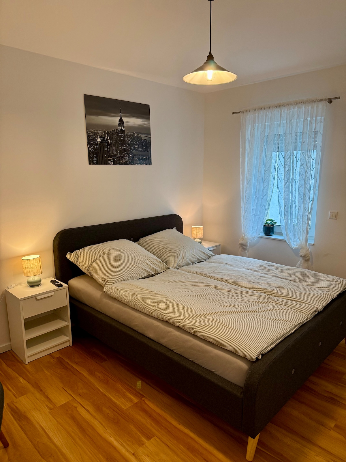 Ruhig aber zentral gelegene Unterkunft, unweit zu den Autobahnauffahrten A5 und A67. Ein abgeschlossenes Apartment in einem 6 Parteienhaus im Erdgeschoss. Voll ausgestattet mit Küche, Esstisch, TV, WLAN, eigenem Bad mit Wanne. Alles neu renoviert und mit Liebe zum Detail eingerichtet <3. Die Unterkunft liegt in Hüttenfeld. Einem kleinen Vorort von Lampertheim. Ein Dorfladen und eine Pizzeria fussläufig. Junge, freundliche und unkomplizierte Gastgeber die sich auf jeden einzelnen Gast freuen!