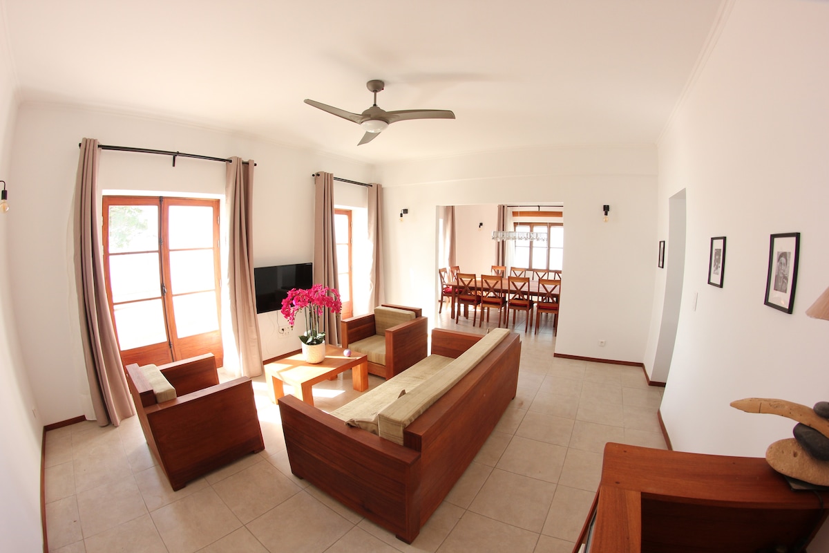 Casa-Evora© 7 chambres, 2 suites, chambre communicantes, SEULE maison d'hôte FACE mer, 1ère ligne, vue exceptionnelle. Une situation unique, au cœur de tout, des pêcheurs, des vendeuses de poisson, de la vie locale, des commerces, restaurants. De style colonial modernisé, allie charme et convivialité, très bien équipée : balnéo, lit confort, wifi, coffre, TV, sèche-cheveux, ventilateur, rideaux occultant, volets, moustiquaires, éclairages. Petit déjeuner, pique-nique, table d'hôte possible.