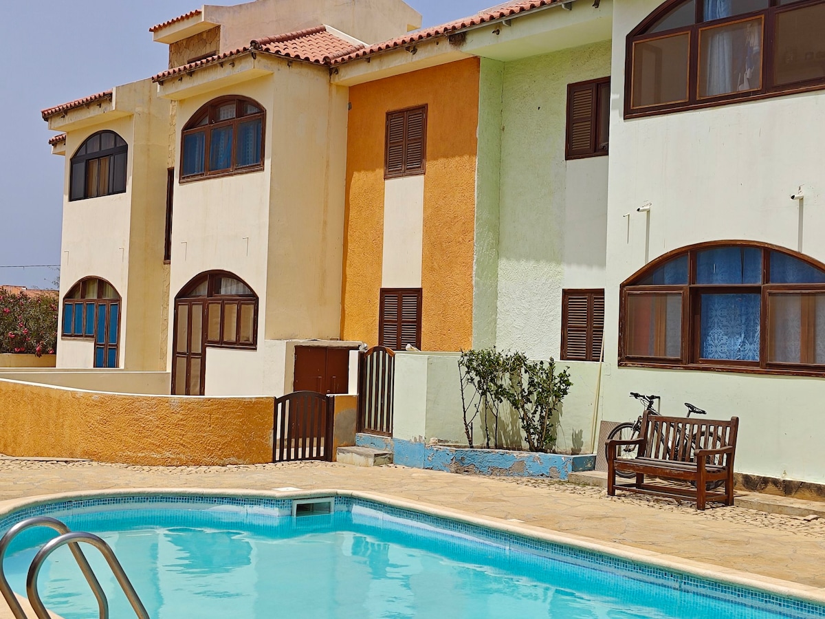 UN ESTUDIO EN LA ISLA DE MAIO EN PORTO INGLÈS. VILLA STELLA MARIS, CON PISCINA Y ACCESO PRIVADO A LA PLAYA. EN UN ENTORNO BONITO Y TRANQUILO CON VIGILANCIA 24/7 A CUATRO MINUTOS CAMINANDO DEL CENTRO DEL PUEBLO. ESTUDIO PARA DOS PERSONAS CON BAÑO, TV, WIFI, AIRE ACONDICIONADO, VENTILADOR Y TERRAZA.