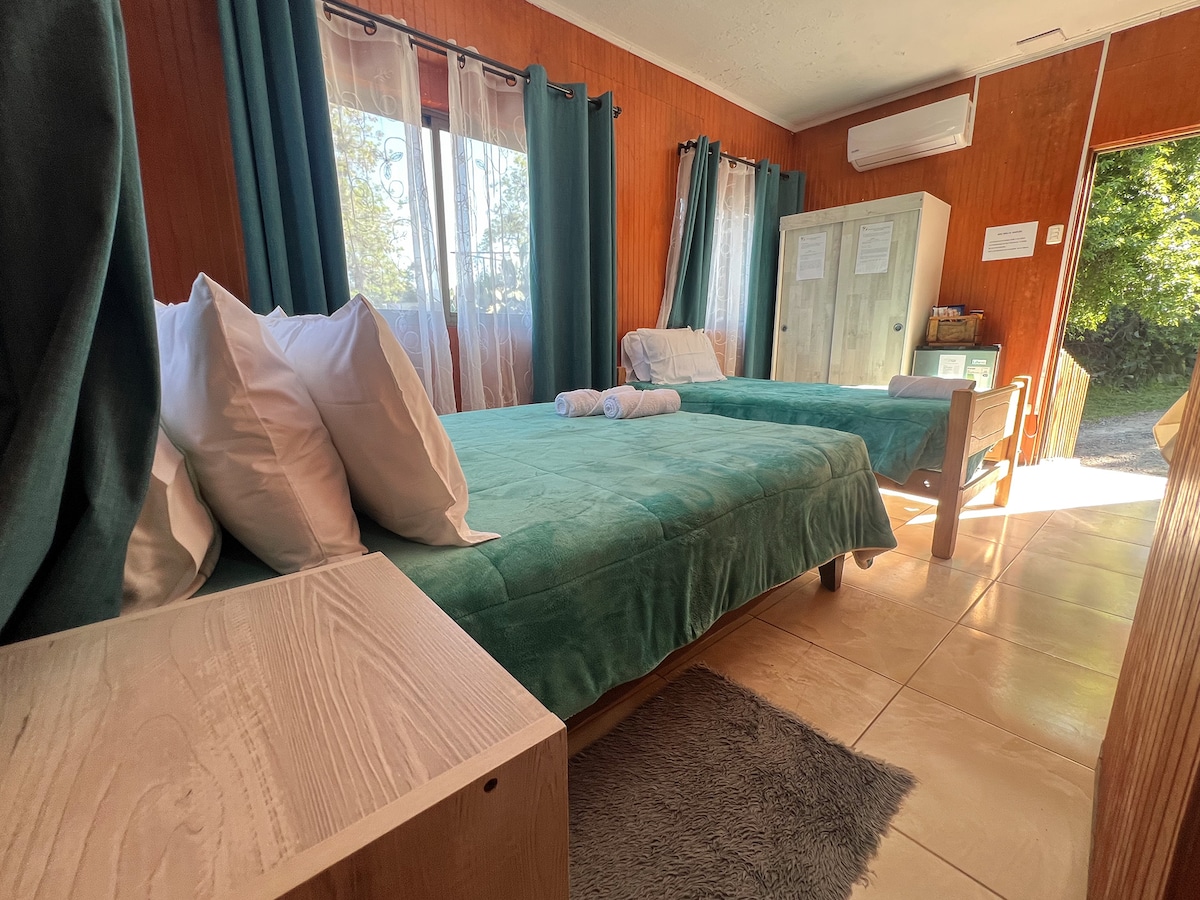 La Eucalipto: Acogedora habitación para hasta 3 personas, que incluye desayuno y un 10% de descuento en la carta del restaurante. Los huéspedes tienen acceso a la piscina y a las áreas verdes. Además, ofrecemos servicio de tinaja con un costo adicional, sujeto a disponibilidad. Está prohibido fumar dentro de las habitaciones. Por razones de seguridad y protección, tanto para nuestros huéspedes como para nuestras instalaciones, el portón se cerrará a las 00:00 horas.