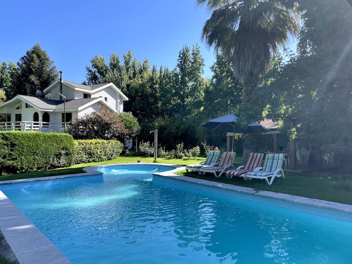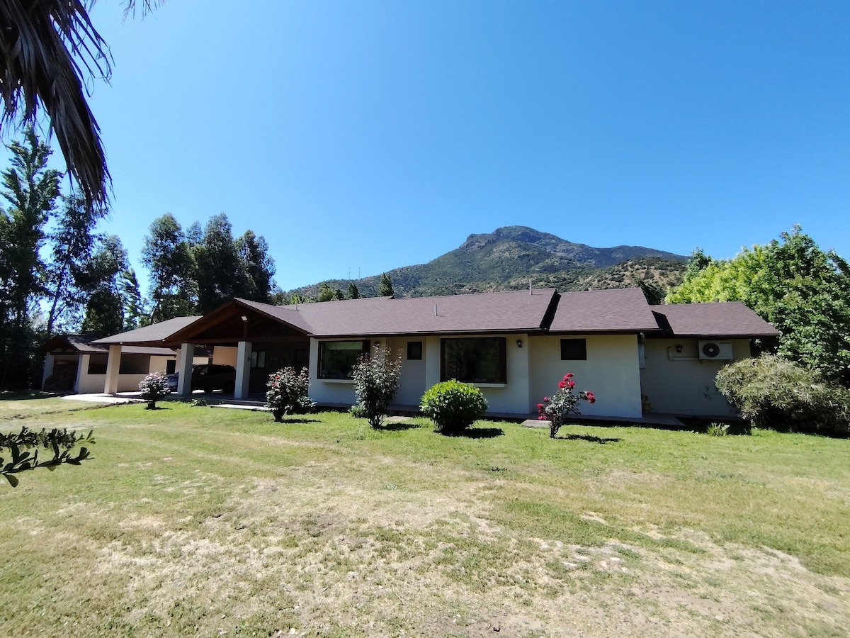 Casa Colonial campestre a 45 minutos de Santiago en Paine con 5 habitaciones más una habitación de servicio, salón de juegos, parque. Incluye sábanas y toallas (piso y manos). Son 4 habitaciones con cama matrimonial, una habitación con 3 camas individuales y habitación de servicio con cama individual. Está prohibido fumar al interior de la casa y hacer cualquier tipo de fiestas.