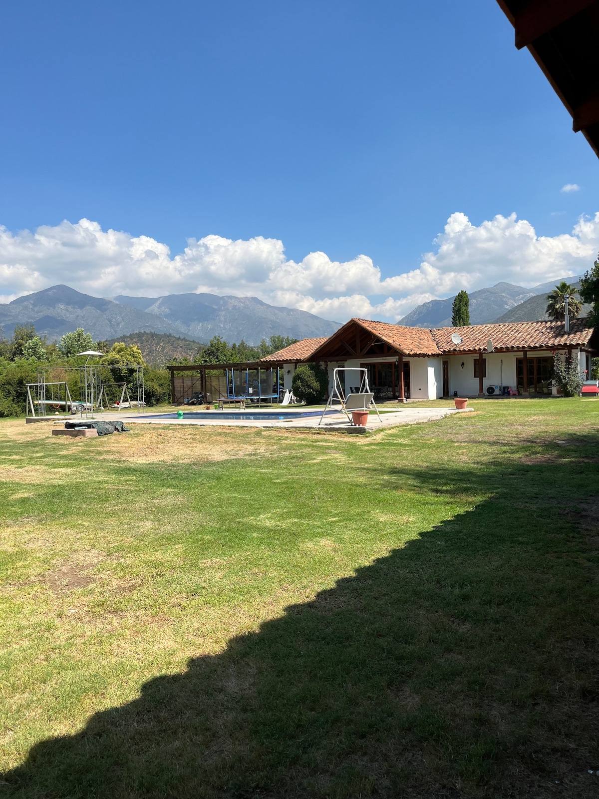 Hermosa casa familiar en Alto Jahuel, Buin, situada en un tranquilo condominio cercano a las viñas del Maipo. Espaciosa y llena de encanto, ofrece un dormitorio principal en suite, cuatro luminosas habitaciones con escritorio, dos baños completos, cocina acogedora y bien equipada, además de un amplio living-comedor con vista al jardín. Disfruta de una gran terraza con parrilla y un jardín encantador con piscina, flores y mesa de ping pong, ideal para momentos inolvidables en familia.