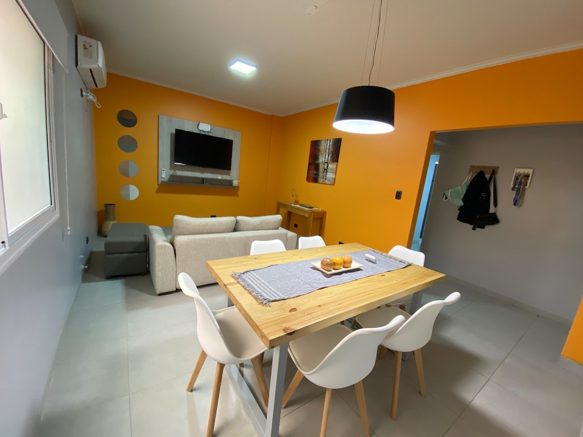 Departamento con espacios sectorizados , en planta baja para 3 personas, cuenta con una cama matrimonial, una cama chica y baño con ducha y bidet incluido en inodoro. Jardín privado y parrilla. La zona es silenciosa y tranquila y a la vez está a 8 cuadras del centro y ubicado en zona de supermercados, minimarkets, farmacias, bancos, restoranes, bares y otros. Tiene buena ventilación e iluminación natural. Esta a 4 cuadras del Parque San Martín y 7 de Arístides. Estacionamiento libre en la calle