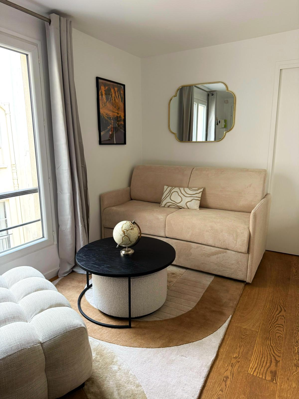 Welcome to our one-bedroom haven, meticulously designed with taste. Enjoy the calm of the courtyard and its small terrace, while in the middle of a lively district. The space emanates a warm, home-like essence. Situated in the heart of the trendy dining and café scene, on the banks of the canal Saint Martin, it's also a few blocks away from the historic charm of Le Marais district.