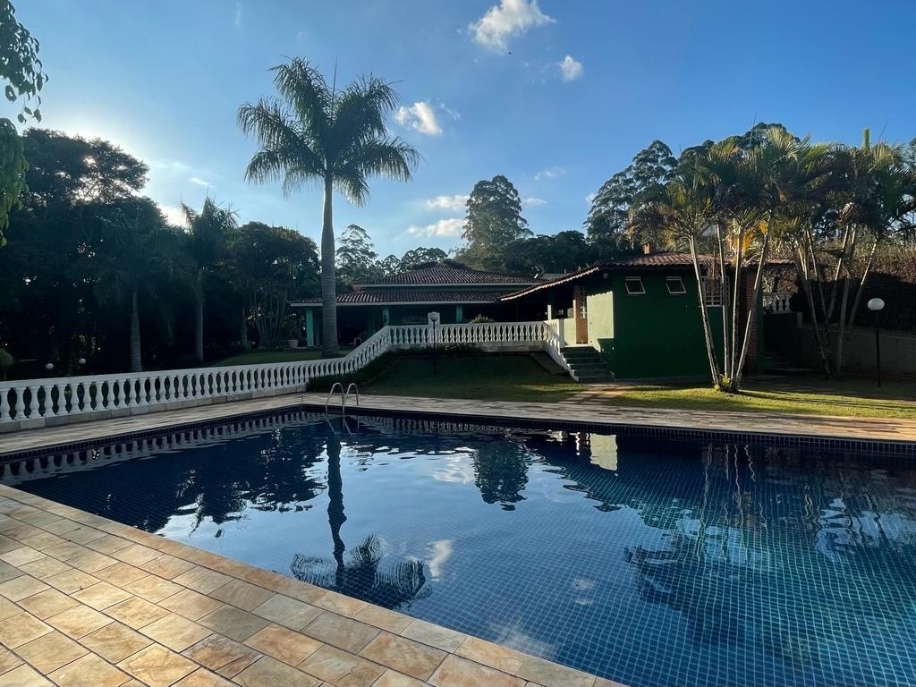 The property is 700 meters (asphalt) from the Raposo Tavares Highway. The main house has 4 suites, 2 living rooms, fireplace, large kitchen, fenced balcony, swimming pool with waterfall, hydro and several sun loungers. Parking for several cars. The annex has a large area for tables, 1 bedroom, 1 suite, 1 bathroom, barbecue, wood pizza oven, wood stove, steam sauna, orchard. It is a very nice, quiet property with space to work. It has capacity for 30 people, charging extra from 21 & up.