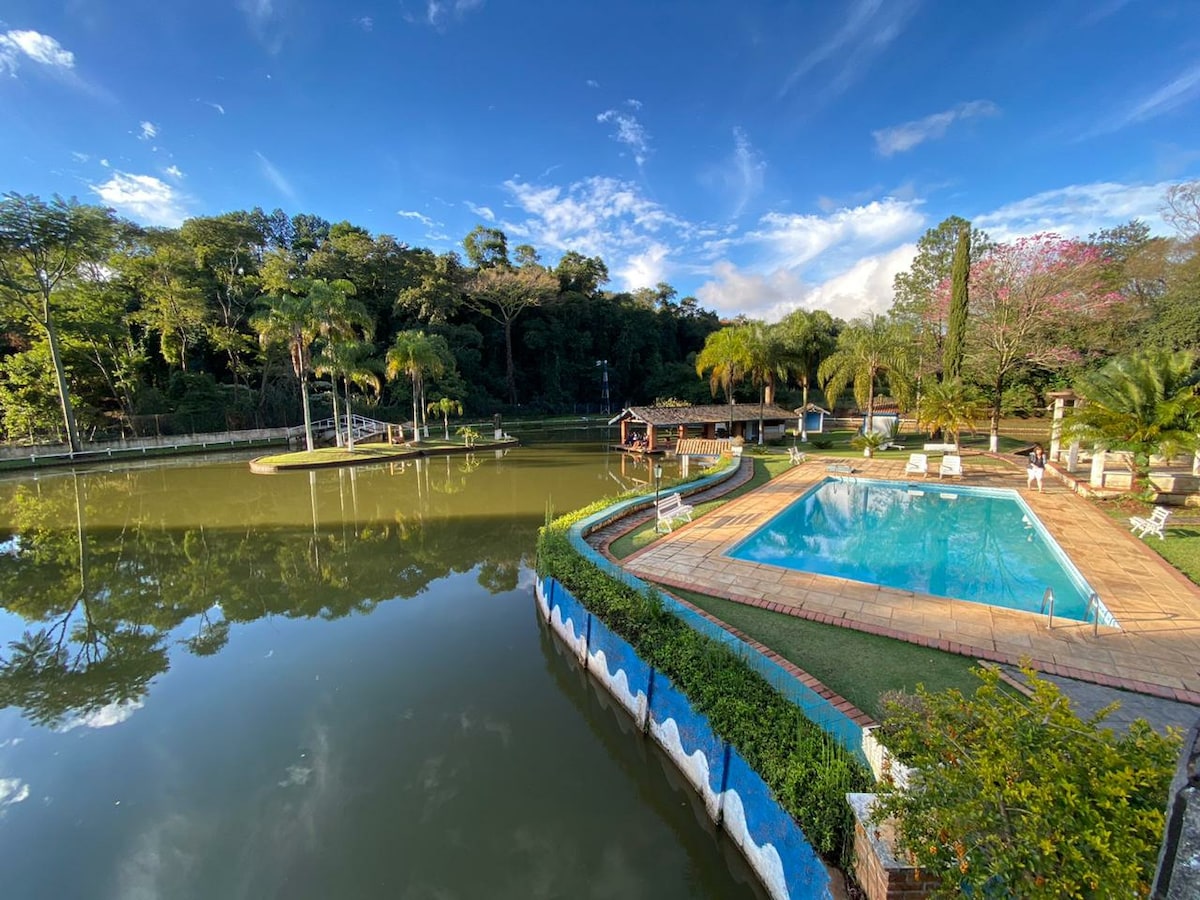 Imóvel com 363,82 m2, com 3 alojamentos/suite (como hotel), salão para jogos e TV, piscina 6 X 12, área de lazer com churrasqueira, forno a lenha e forno e pizza, cozinha, bar, quadra de futebol, salão, rio, playground, estacionamento. IMPORTANTE NOTA SOBRE O RIACHO - O local, apesar de possuir um córrego em sua área privativa, o mesmo tem somente o caráter ornamental. Não tem a funcionalidade de um ambiente para pescaria. Vale ressaltar que mesmo é sujeito à sazonalidade dos períodos de seca.