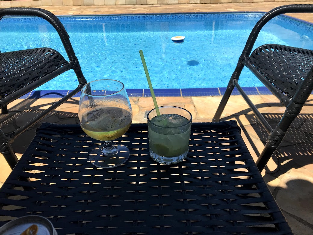 3 quartos 3 banheiros (2 internos na casa + 1 externo área da churrasqueira e piscina) 1 sala com TV 1 cozinha (geladeiras, fogão, mesa, armário e utensílios domésticos, Forno de Micro ondas e cafeteira Doce Gusto) Area gourmet: Churrasqueira, forno e fogão a lenha com 2 pias e TV Smart Cervejeira / Freezer Lazer: Campo de futebol Parquinho Piscina 8 x 4 (com cascata, hidromassagem e iluminação de LED colorido) Prainha infantil 4,5 x 1,5 Mesa de Pebolim Wi-fi Livre - FIBRA OTICA 120MB