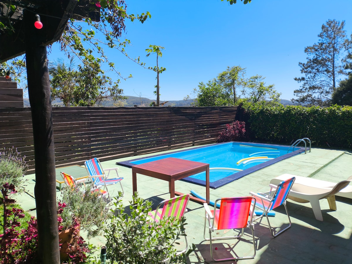 Casa de campo, com lazer completo para adultos e crianças a 50min de São Paulo - Capital. Casa espaçosa e confortável para até 15 pessoas, 6 suítes e varandas. Caso precise acomodar 17 pessoas NOS CONSULTE. Área gourmet espaçosa, confortável, com geladeira, cervejeira, churrasqueira e forno de pizza à lenha. Ideal para aproveitar com a família e amigos no verão curtindo a piscina ou no inverno aproveitando as lareiras.
