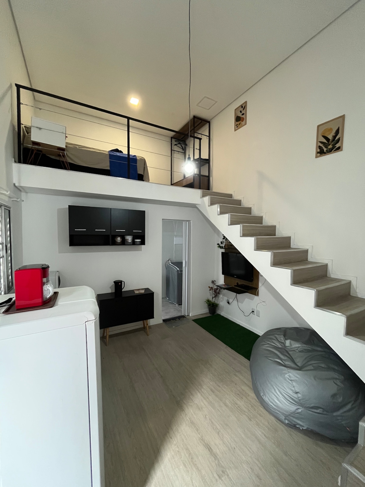 🌙 Perfeito para um fim de semana ou dias de home office! Nosso studio é ideal para dois: cama de casal, sofá, mesa de refeições / trabalho, internet rápida, TV com +400 canais, filmes e séries 🎬, cozinha equipada para pequenas refeições 🍝 e varanda com um lindo jardim vertical e balanço 🌿 Bairro tranquilo e residencial, com acesso 100% asfaltado. Nosso condomínio é exclusivo para adultos Um espaço aconchegante para relaxar e sair da rotina 💕 Sejam bem vindos ✨