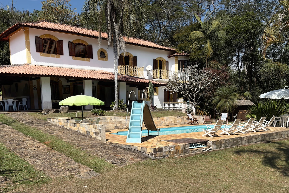 Decoração rústica, lugar tranquilo, arborizado 40 km de sp, onde o centro de Mairiporã fica 5 km, onde si tem barzinhos, restaurante japonês , ideal para trilhas a pé nas proximidades, visitar o mirante Pico olho D'Água para uma vista incrível da cidade. Essa propriedade oferece piscina com borda infinita, cascata, churrasqueira, fogão a lenha, forno de pizza e forno a lenha, mesa de bilhar. Wi-Fi Região super tranquila com câmeras na rua. Localizada em uma rua sem saída Espaço privativo.