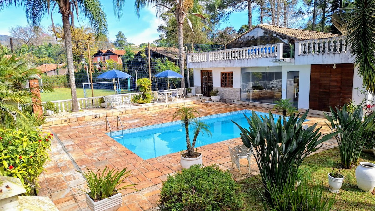 A chácara está localizada em Mairiporã, dentro de um condomínio fechado, com portaria 24 horas. Ruas asfaltadas até a chegada na chácara. Composição dos quartos São 4 quartos sendo 2 suítes Sendo 01 banheiro de banho avulso fora dos quartos - Totalizando 3 banheiros de banho. 4 camas de casal 4 colchão de solteiro no chão. 1 Bicama solteiro Totalizando estrutura para até 14 pessoas dormirem. cobramos taxa extra por pet de R$ 100.00 cada PET, a cobrança é feita direto com o anfitrião