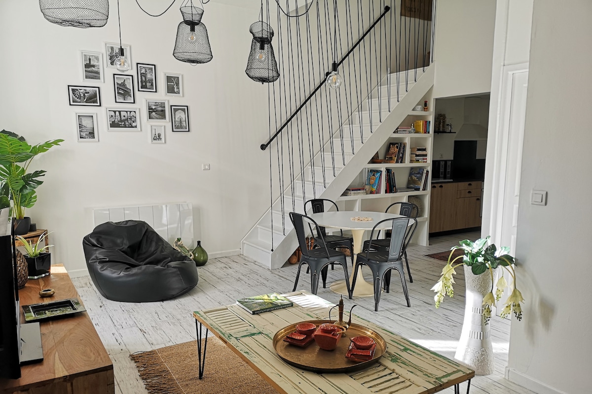 Au cœur du quartier de l’îlot Littré de Nîmes. Profitez à pied du centre historique de la ville. Avec sa vue sur les toits nîmois, l'appartement est très lumineux et surtout, climatisé pour faire face à la chaleur du sud. Au 3ème et dernier étage (SANS ascenseur), loft lumineux dans une rue calme à 2 pas de la Maison Carrée, des Jardins de la Fontaine (et sa Tour Magne) et des Halles. A 10-15 min à pied des Arènes et de la gare de Nîmes Centre.
