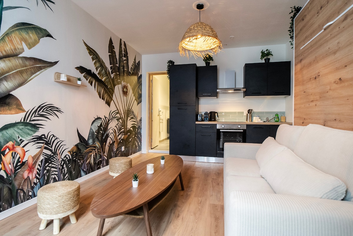 L'Escapade Sereine –单间公寓,带空调、花园和停车位