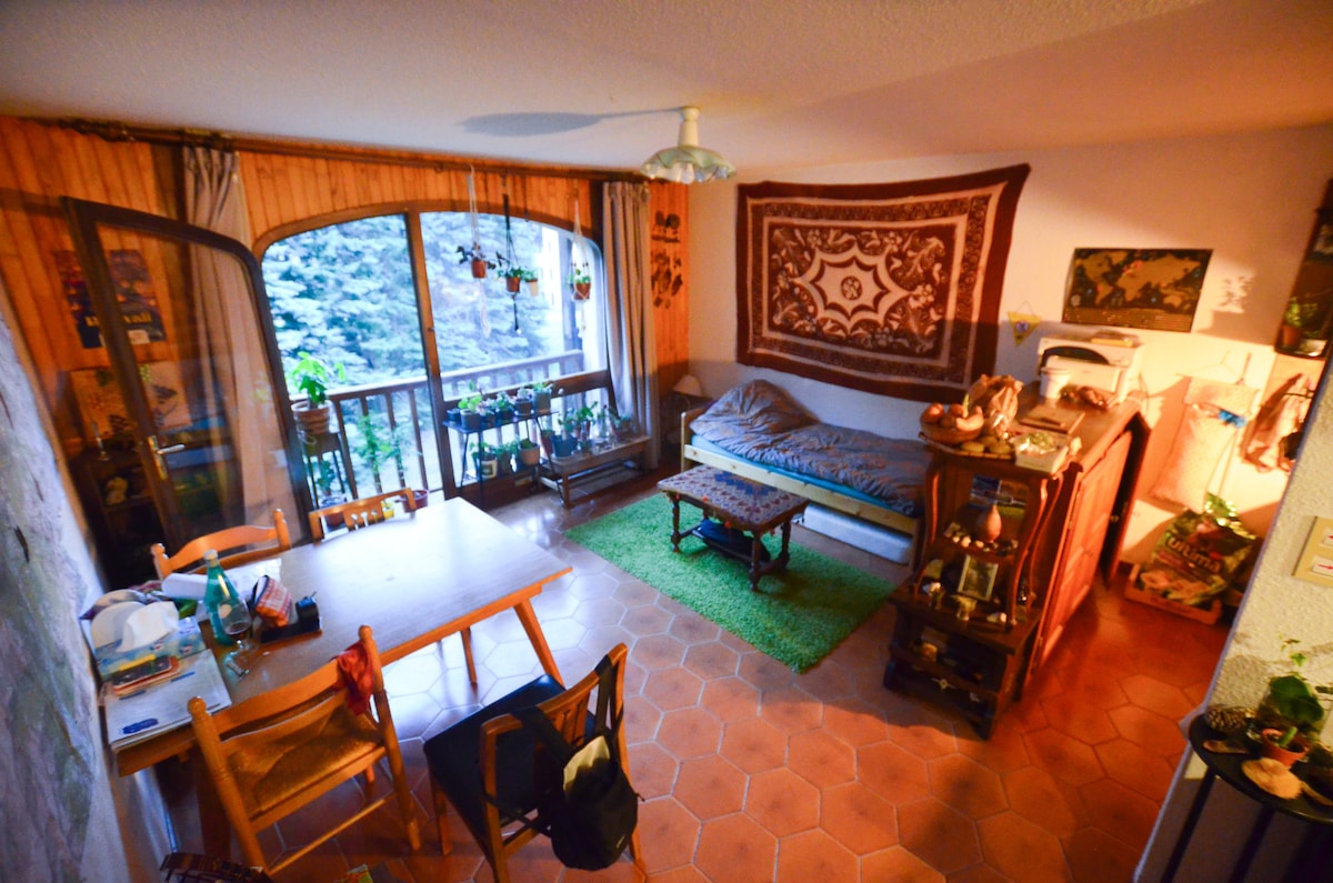 Appartement de 28 m2 entièrement rénové au 1er étage de notre maison dans quartier calme avec terrasse de 18 m² exposée sud, vue dégagée sur les montagnes. 1 pièce avec coin cuisine équipé, salon avec tv, wifi, canapé convertible, 1 chambre avec un lit double (140x190cm) et deux lits superposés (90x190cm). 1 salle de bain avec douche et wc. Logement idéal pour 2, possible jusqu’à 4 personnes. Stationnement sur parking privé. A 900 m du centre ville et gare.