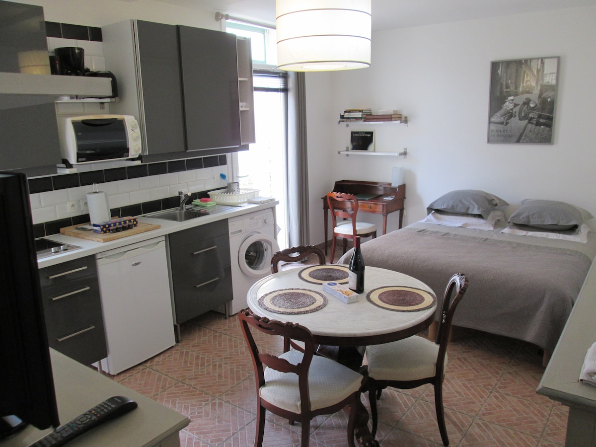 Studio proche du château, entièrement rénové de 29m2, indépendant dans une maison , accès par le jardin , petites marches. Éclairages la nuit. Un lit double 160 ou bien 2 lits simples 80. L’été possibilité de mettre une petite table dehors sur la terrasse. Calme Vue sur le jardin. Une kitchenette, plaque électrique, four micro ondes, réfrigérateur, bouilloire , Nespresso Un lave linge