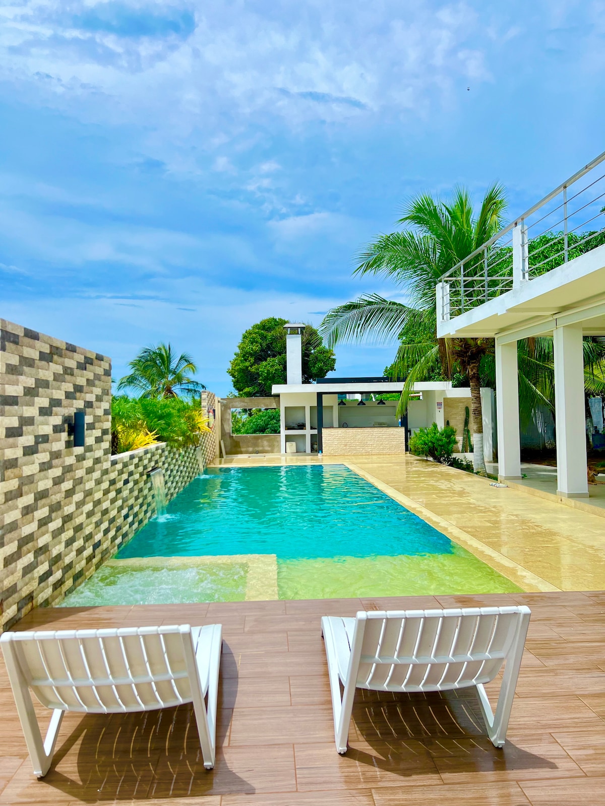 Cabana campestre a 20 minutos de Barranquilla. Primera linea de playa, deck privado en madera frente al mar. Mirador de 2 pisos frente al mar. Piscina, aire acondicionado, wifi de alta velocidad, escritorio para home office viendo al mar. En las playas de Sabanilla, playa sin casetas, tranquilidad total. Disponibles asador tradicional de carbon y tipo barril. Hamacas, camilla masajes, silas de playa, hamacas acuaticas de piscina.