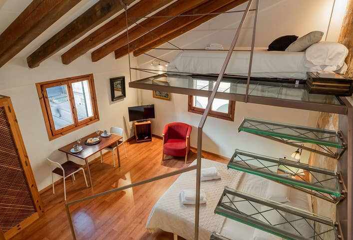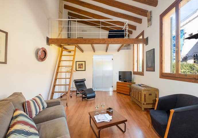 Spacious duplex apartment with a private entrance from the Majorcan patio and from the building's private parking. It has two large double rooms with a complete bathroom en suite, a living room, a dining room, an equipped kitchen and an additional toilet. The patio is private and has a small chill out area. This apartment belongs to the Ramon Llull House accommodation, an old 18th century house renovated and converted into an exclusive accommodation ideal for enjoying Mallorca all year round.
