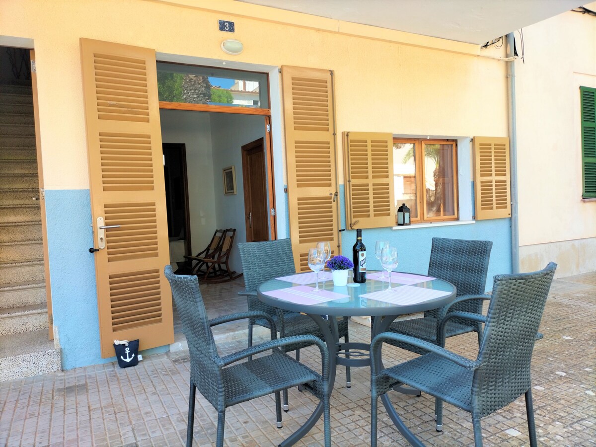 Bonito apartamento de 56 m2 a solo 300 metros de la playa con terraza de 10 m2, Reformado y moderno, cocina totalmente equipada. Aparcamiento propio. En Es Pinaret, zona muy tranquila, a 5 minutos paseando de la playa y del centro del pueblo. Muy cerca del supermercado que tiene abierto todos los días de la semana, de restaurantes y bares. Primer piso con escalera muy amplia, ideal para dos viajeros que quiera disfrutar de la playa, relax, ver naturaleza o hacer deporte por el norte de la isla