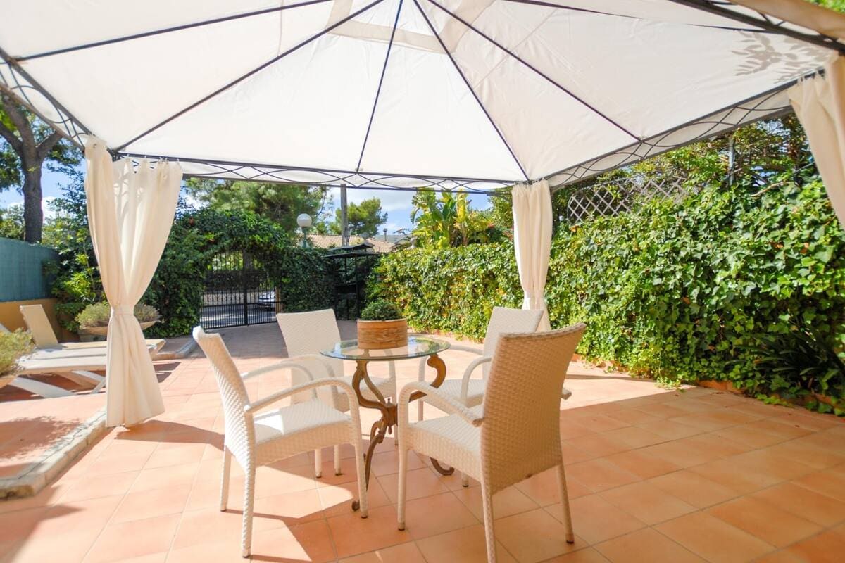 Nuestra Villa está situada a 50 metros de la preciosa playa del puerto de Alcudia. Ideal para niños por su poca profundidad, su arena blanca y fina. Una de las mas bellas de Mallorca! Hospedamos hasta un máximo de 12 adultos. Se distribuye en 2 casas en una misma superficie y en una sola planta. El edificio principal es para máximo 8 personas y el anexo para 4.