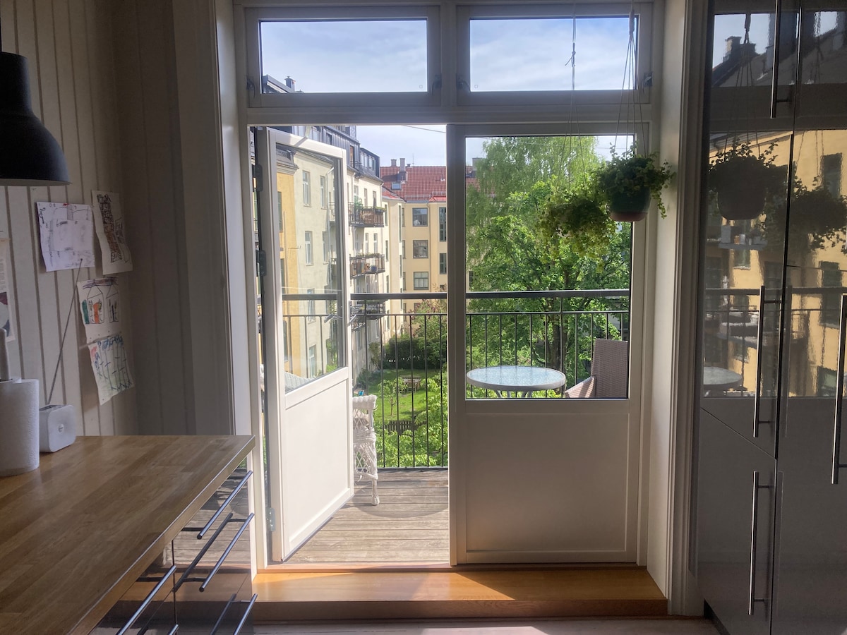 Toppleilighet, Wi-fi, heis, utsikt, sentral fredelig lokasjon, stor balkong, Nærhet til Frognerparken og Det Kongelige Slott Her er bor du fredelig rett ved Norges største handlegate og sentralt kollektivknutepunkt. Et kvarter med kollektivtransport, operaen, Munch-museet og internasjonale kulturtilbud i Norge, Holmenkollen og Nordmarka, 2000 km skiløyper om vinteren, sykkelstier langs fiskevann og elver om sommeren, fredfulle strender og kyststier langs indre Oslofjordområdet