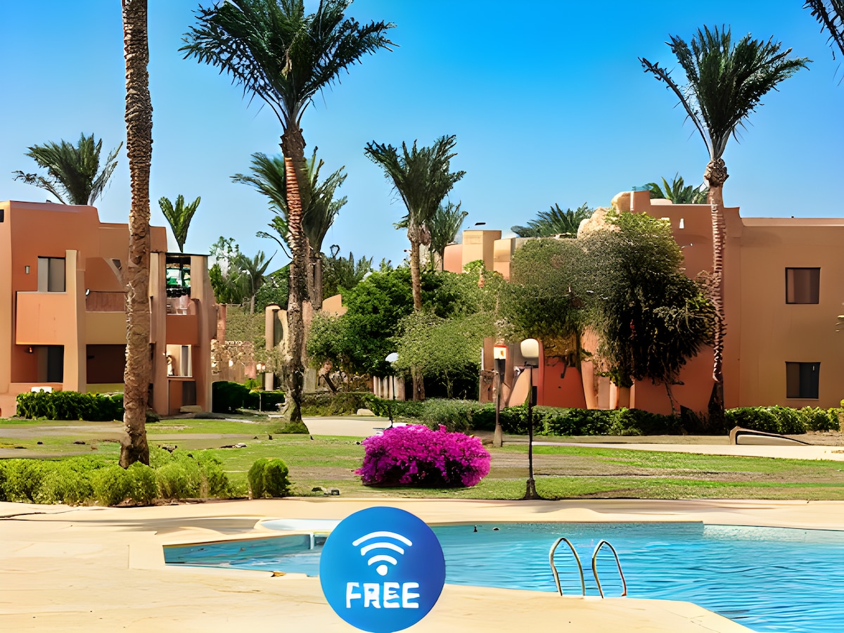 Location: Makadi Heights by Orascom, Hurghada — a secure compound offering all the facilities you need: a clubhouse, supermarket, pharmacy, clinic, pet shop, phone shop, shared pools, restaurants, coffee shops, and a laundry service. Access to Labranda & Serenity Beach and to the clubhouse with a heated pool is available upon request for an additional fee of $70 for two guests, for a maximum stay of 10 days A quiet and clean place to relax with your family.