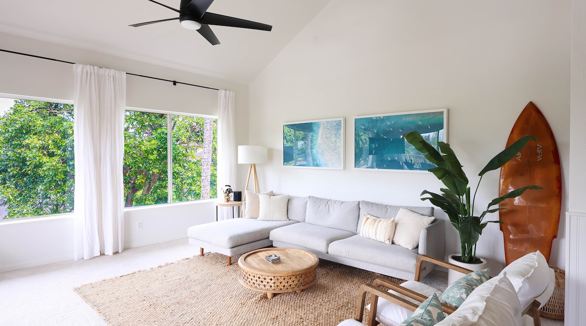 This bright and airy updated condo is the ideal place to stay in sunny Poʻipū for couples, honeymooners + small families. The open living space is clean and welcoming with a coastal boho vibe, and you'll enjoy beautiful ocean + garden views from the huge upper-level lanai. Location is the absolute best - from the beachfront property, you can walk to several of the best beaches on the south shore, local coffee, restaurants, shops, and the incredible pool within minutes.