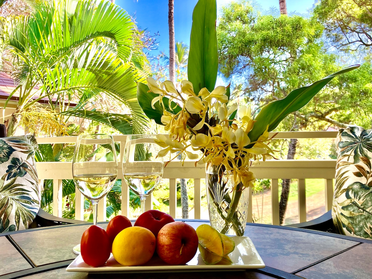 This amazing bright and open condo in is sure to make your vacation fantastic! The perfect place for couples and small families to enjoy the amazing island of Kauai. Enjoy coffee or dinner on the covered lanai with gorgeous ocean views. This centrally located condo is beachfront (5 minute walk)and within walking distance to the luxurious amenities offered the athletic club pool and gym, restaurants, coffee local shops. All costs, fees and taxes are included here in Airbnb!