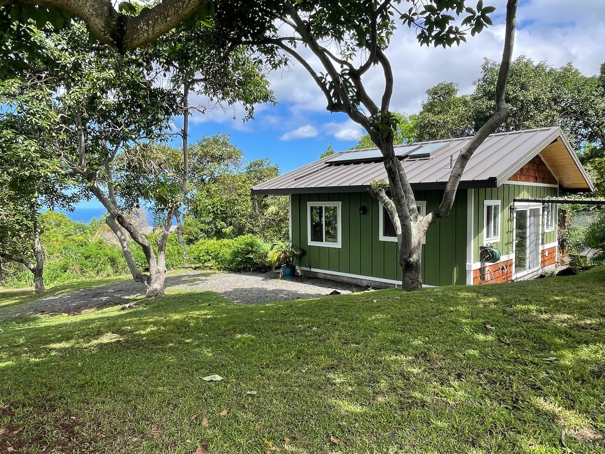 Introducing a private oasis of comfort and charm, our newly renovated tiny house. This simple retreat is a testament to minimalist luxury and offers a convenient escape near Kona International Airport and downtown Kailua Kona. The exterior of the tiny house is a harmonious blend of rustic charm and simple design, featuring a quaint porch, perfect for sipping your morning coffee or working on the computer while gazing at the pacific ocean.