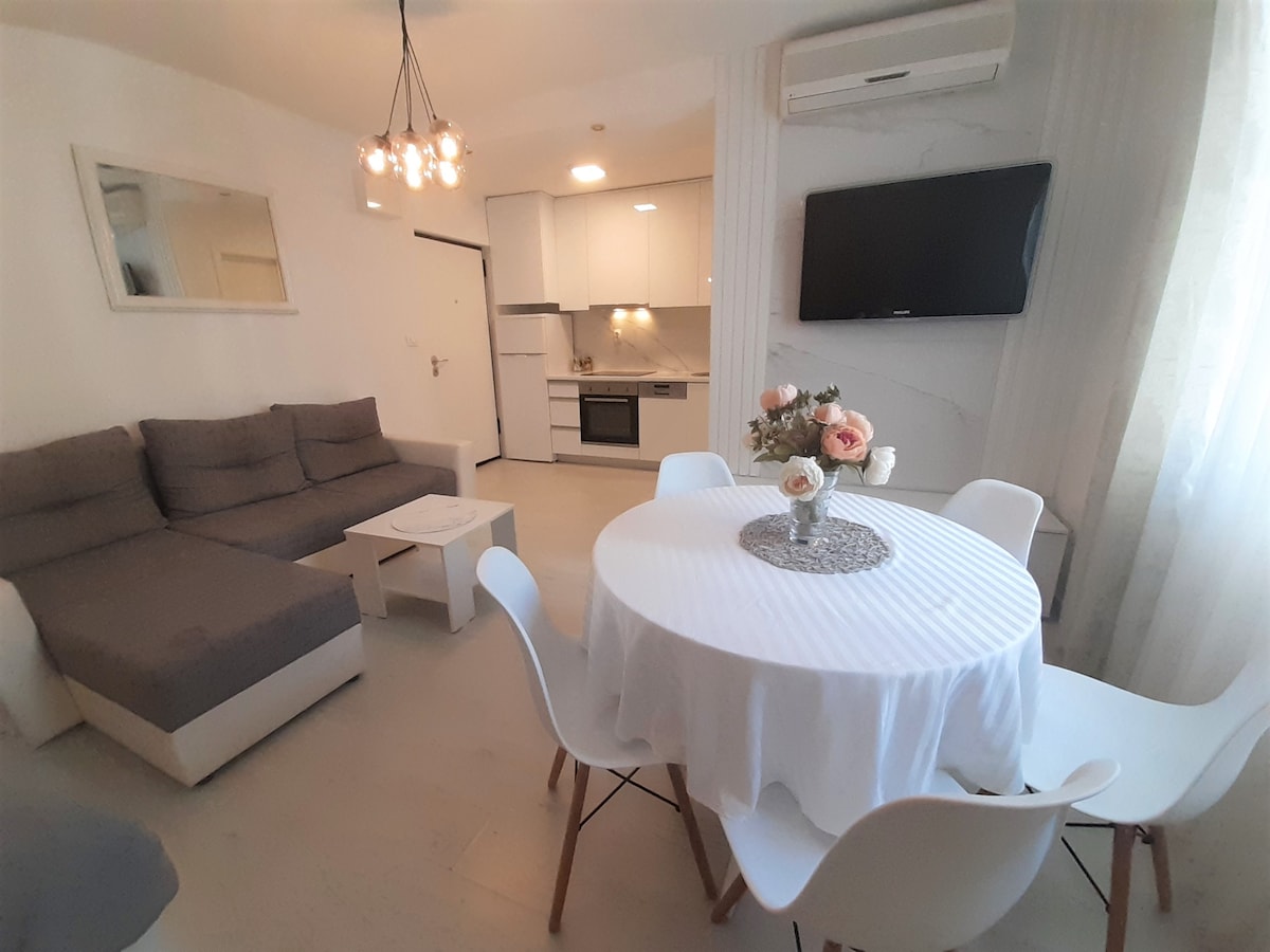 Ideal for remote winter job. Apartment with direct accsses to the beach adjusted for long term winter stay. I am switching to new profile with my husband so please finish the booking on my 2*New Brankas listing- just click on my photo and scroll and you can find it, or just text me for details:) Perfect for every time of the year. Enjoy the sun and sea and fall asleep with the sounds of waves. Wi-fi, parking, grill, sun beds and umbrellas, beach towels, kayak, stand up paddleboard- free to use