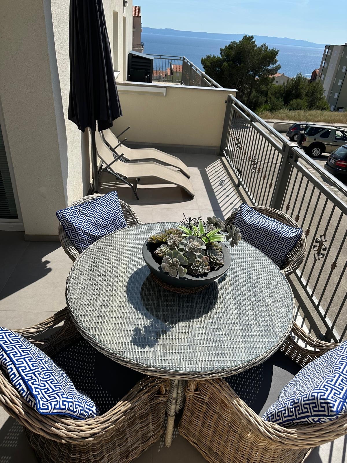 New modern Apartment with sea view just 350 meters from the sea. Elevator. private parking Apartment is fully equipted. It has bedroom with King size bed 180x200. bathroom. with bih walkin Shower. Nice living room with fully equipt kitchen and big balcony with stunning view of sea Makarska and Islands. You can enjoy on Balcony with glass od wine and watch sunset or rest on big sofa and look it from the living room. Living room has table for 4 persons od sit in the kitchen with glass od Gintonik