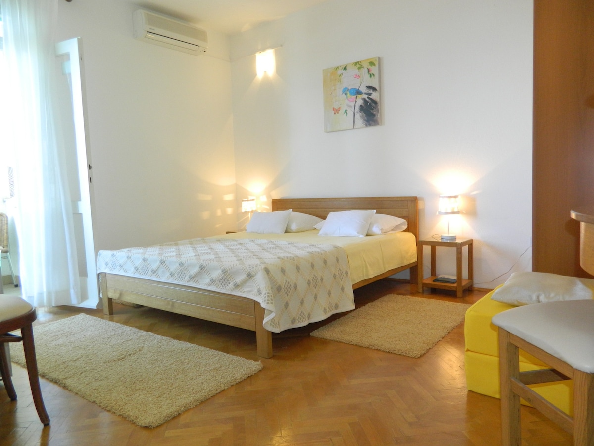 Bedroom is located on the first floor of our house and has balcony with direct sea view,has one double bed and 1 extra bed,bathroom,AC,free wi-fi and sat tv. We have a swimming pool in front of our house of our guests. In our offer there is also a breakfast that we charge 12 euro per person.