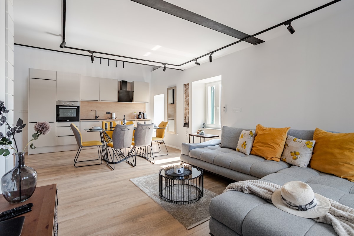 SLEEP IN THE ISMAELLI PALACE FROM THE 15TH CENTURY Luxury, fully furnished 2-bedroom loft in a unique, 600-year-old Ismaelli Palace (UNESCO World Heritage) in the heart of Korcula old town. Just steps away from St. Marc Cathedral, this duplex loft offers a modern, spacious living area with a large dining table, a fully equipped kitchen, 2 bedrooms, a fully equipped bathroom, and air conditioning in every room. The loft is perfect for digital nomads for longer stays.