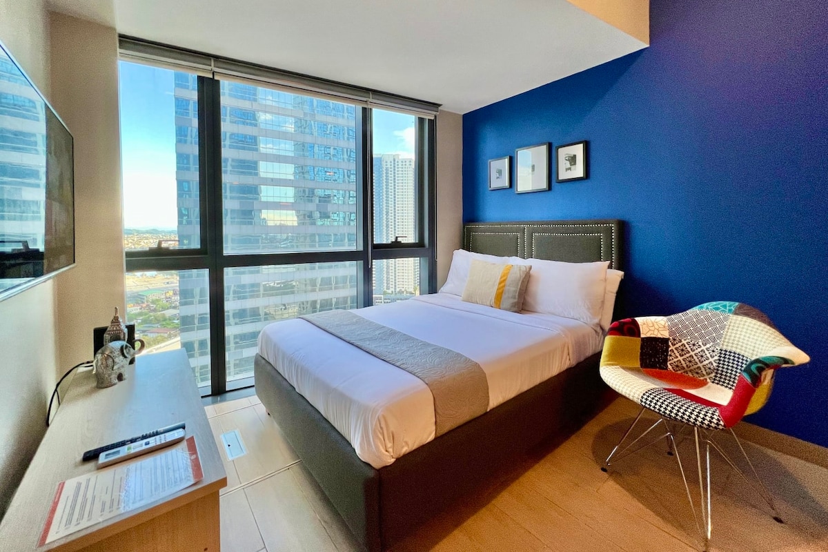 一间位于BGC的公寓,有2⭐️张加大双人床,位于30楼,提供便利设施