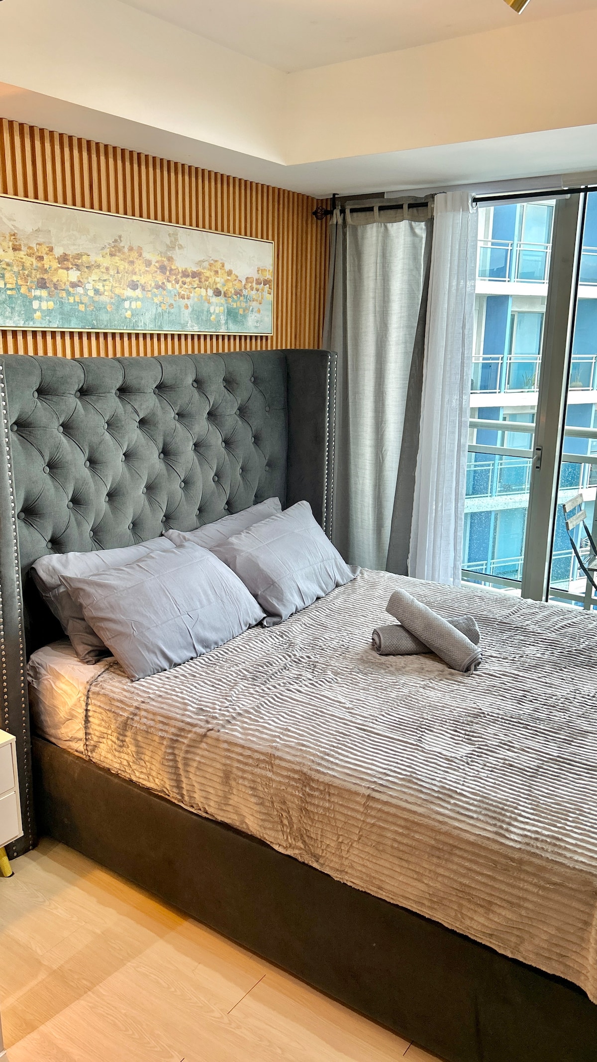 A modern minimalist design, 1-Bedroom Condo unit- overlooking Azure Lagoon/Beach view & Skyline View in Metro Manila. NOTE: NO FREE ACCESS TO THE BEACH! Rate: P250 pesos per pax/per shift, payable at Azure. Wave Pool Access time: 7AM to 12NOON and 2PM to 7PM only. NOTE: Wave Pool is CLOSED every Tuesday for MAINTENANCE, except holidays. Pls note: Pool maintenance do change over from time to time. Pay parking Php380 per day for cars and 280 for motorcycle. payable at Azure staff.
