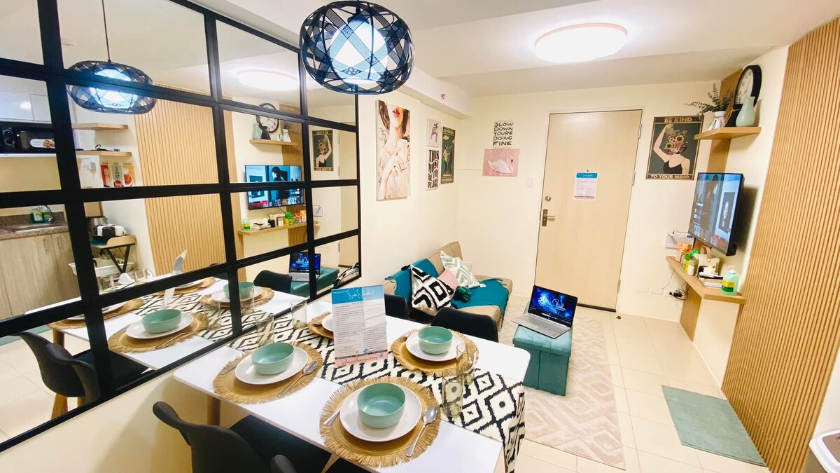 Unit is Renovated for Airbnb purposes. Inverter Aircon /smart TV /microwave/fridge /shower heater /tower 1 /facing amenities/morning sun/with balcony Due to the strict protocols of SM light . EVERY guest must provide 1 VALID ID each (please provide upon booking) for registration purposes. also be aware that all guest CANNOT have visitors for safety and security as per building administrator (strict building policy)