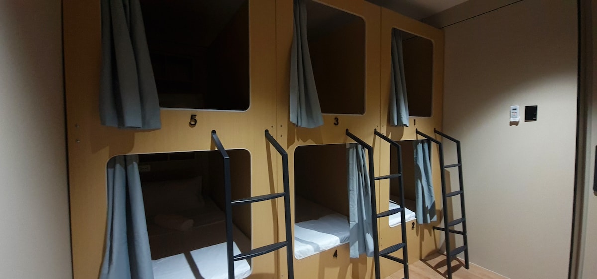 Experience comfort and privacy in our 10-Bed Male Dormitory Room, perfect for solo travelers or groups. Each guest enjoys a cozy capsule-style bunk with privacy curtain, reading light, USB/power outlet, and secure locker. The room is fully air-conditioned and thoughtfully designed for both rest and functionality. Shared bathrooms and full access to hostel amenities are included, offering a convenient and affordable stay in the heart of Manila.
