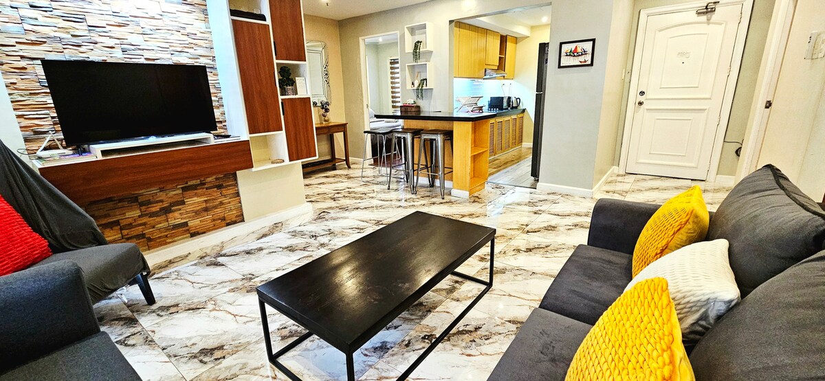 Located in the center of Makati red-light district, this one bedroom apartment is renovated & fitted out to suit an endless summer vacation vibe There are 2 flatscreen TVs, split type AC in the bedroom, comfy queen bed, electric reclining love seat, new karaoke speaker, kitchen plus a spacious balcony for smokers 🚬 Registered guests are allowed to have visitors but room provisions can accommodate 2 to 5 pax staying overnight. If you prefer utter silence, this might NOT be the place for you‼️