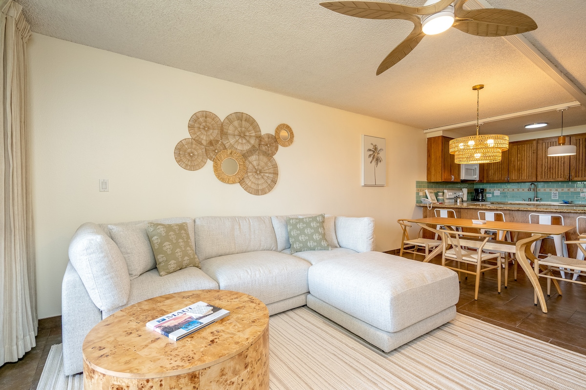 A freshly updated, fully-furnished condo situated across the street from the beach and nestled in a welcoming and quiet complex. Enjoy a beautiful space complete with a king-sized bed, renovated kitchen, a new sleeper sofa and a quiet lanai. With modern design and minimal decor, this space is perfect for you to unwind and relax. Complete with an in-unit washer and drier, this will be your home on the island and your oasis to rest. Steps away from food, drinks, a pool and the beach! Come stay!