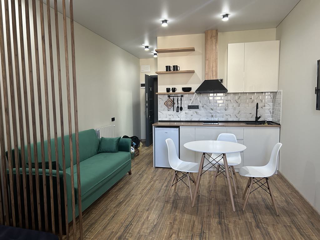 Unique studio in one of Batumi’s🏝️ best complexes — Sunrise🌇. Stylish, fully equipped, and perfect for long-term stays. Panoramic views of the sea, mountains, and city. High-quality furniture, cozy balcony with chair and string lights — ideal for relaxing. Modern bathroom with walk-in shower. Feels just like home — clean, comfortable, and thoughtfully designed ❤️