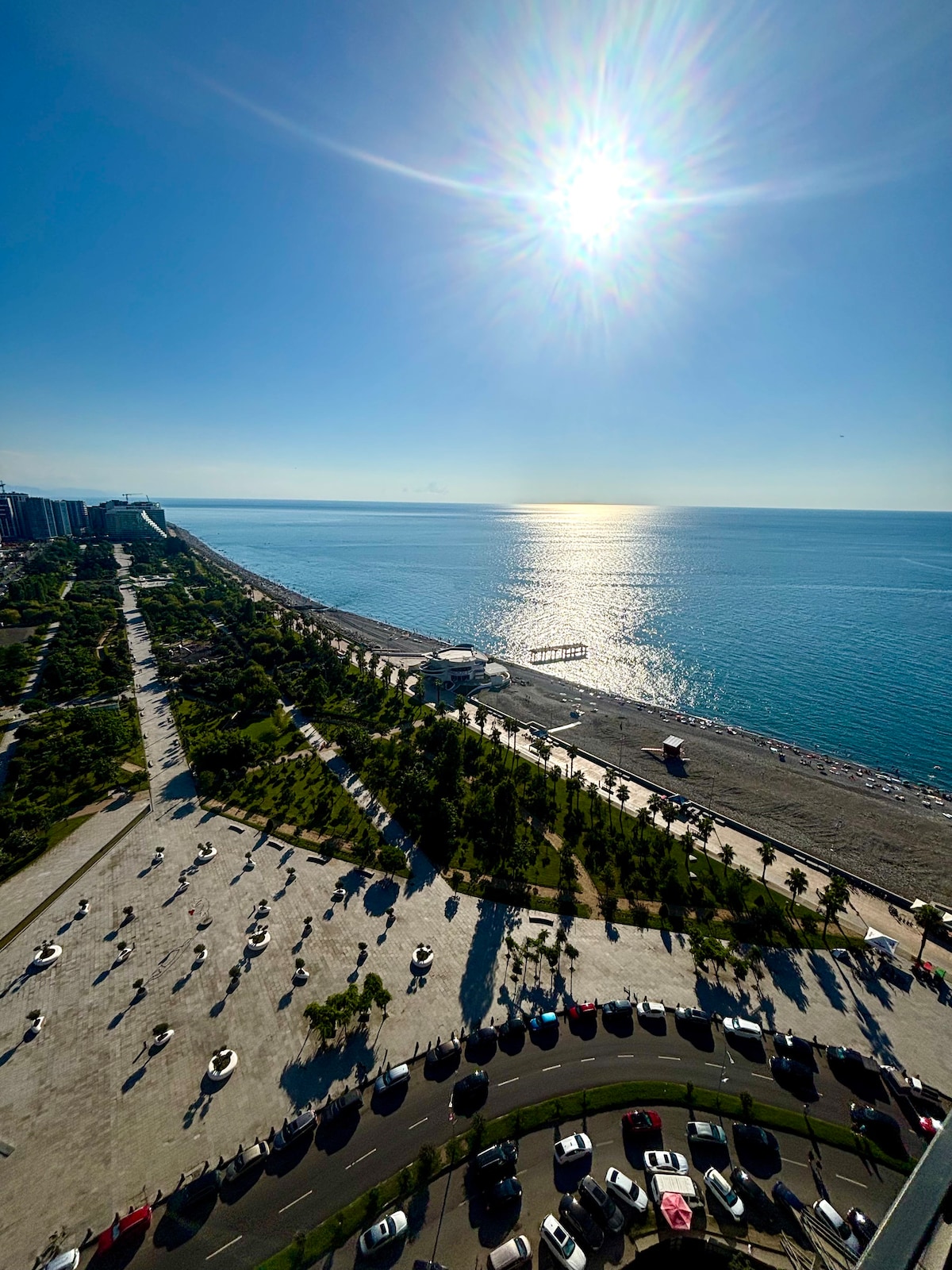 Modern spacious premium studio on the 17th floor with stunning views of the sea, park, mountains and pool. The apartment has everything you need for a comfortable stay: dishwasher, capsule coffee maker, washing machine, toaster, microwave, etc. The apartment is located in the best complex in Batumi with a large territory, swimming pool, sports and playground in the courtyard, restaurants and a shop. Near the shopping center, casino, sea and park. The airport is 5 minutes away by taxi.