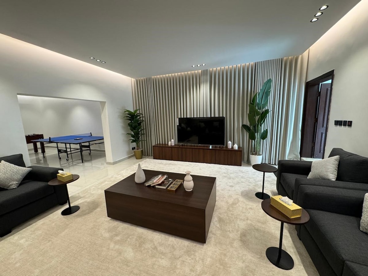 مكان هادئ، جميل متوفر فيه جميع وسائل الترفية ، مسبح داخلي بسخان مع اطلالة على الحديقة ، ملاعب اطفال ، مجلس كبير مع موقد لاشعال النار ، مطبخ تحضيري مع موقد وثلاجة و مايكرويف ، جلسات خارجية ، غرفة نوم مع مدخل خاص للمسبح ودورة مياه خاصة ، غرفة نوم من ثلاث اسرة ، صالة داخليه كبيره. 🛎️ نقدم وجبة افطار مجانية بمناسبة شهر رمضان للحجز الواحد لاتزيد عن 6 وجبات ،،