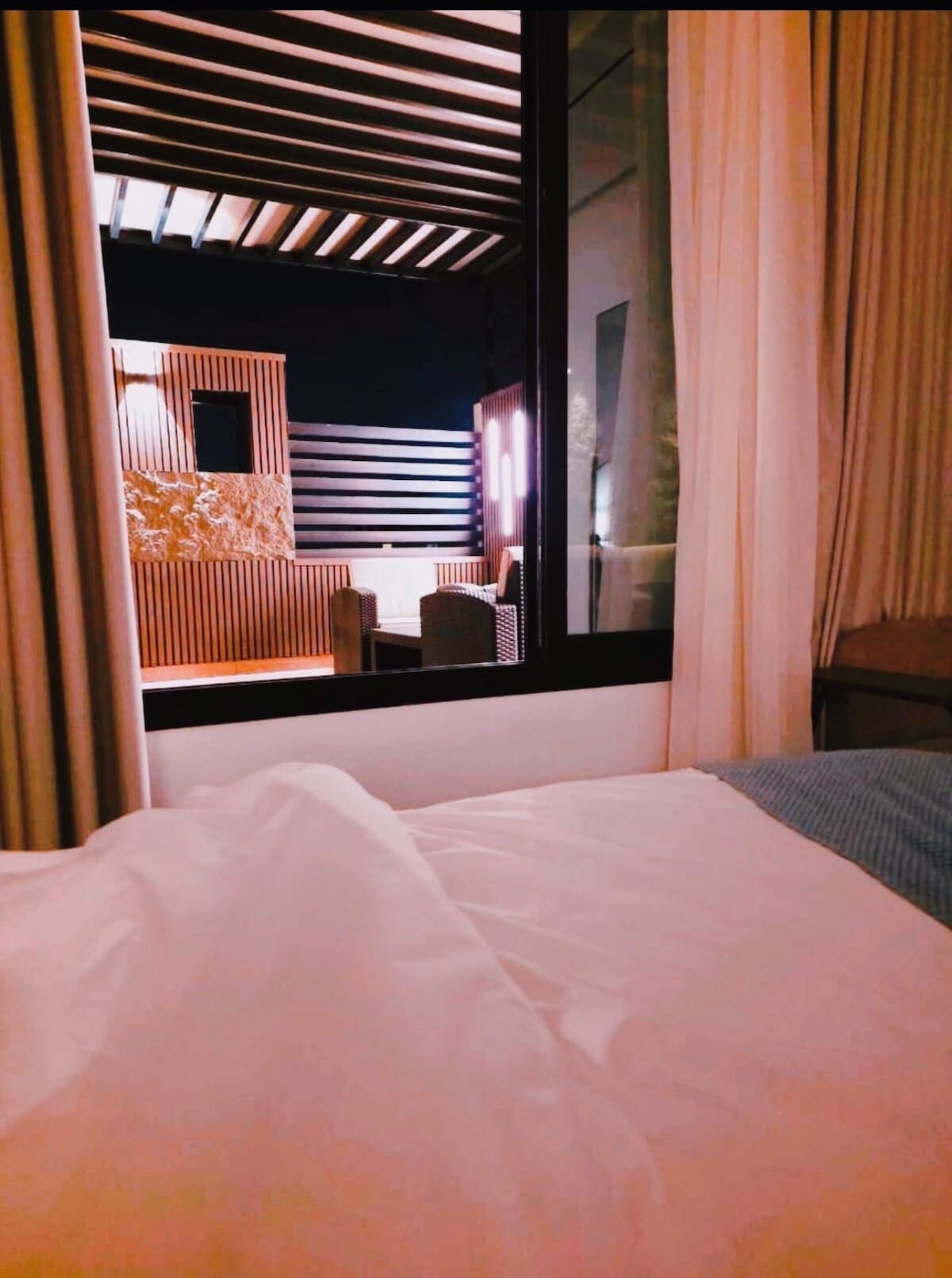 يحتوي الجناح على سرير مريح بمرتبة طبية عالية الجودة ومفارش ومخدات فندقية وجلسة لطيفة وطاولة ودورة مياه بالإضافة إلى ركن كوفي فيه آلة قهوة ومشروبات ساخنة وماء ضيافة لضيوفنا الكرام كذلك ثلاجة وميكرويف وآلة لتحضير القهوة العربية وتلفزيون سمارت وخدمة انترنت وطاولة كوي وادوات حمام وغسالة ملابس ، كما أن الاضاءة هادئة ومريحة والغرفة تتمتع بالخصوصية والهدوء الموقع حيوي أمامه ممشى وملعب كره وحديقه فيها ألعاب للاطفال وقريب منه مسجد وباص النقل العام وحوله جميع الخدمات من مطاعم تبعد عن الحرم ٣ كيلو