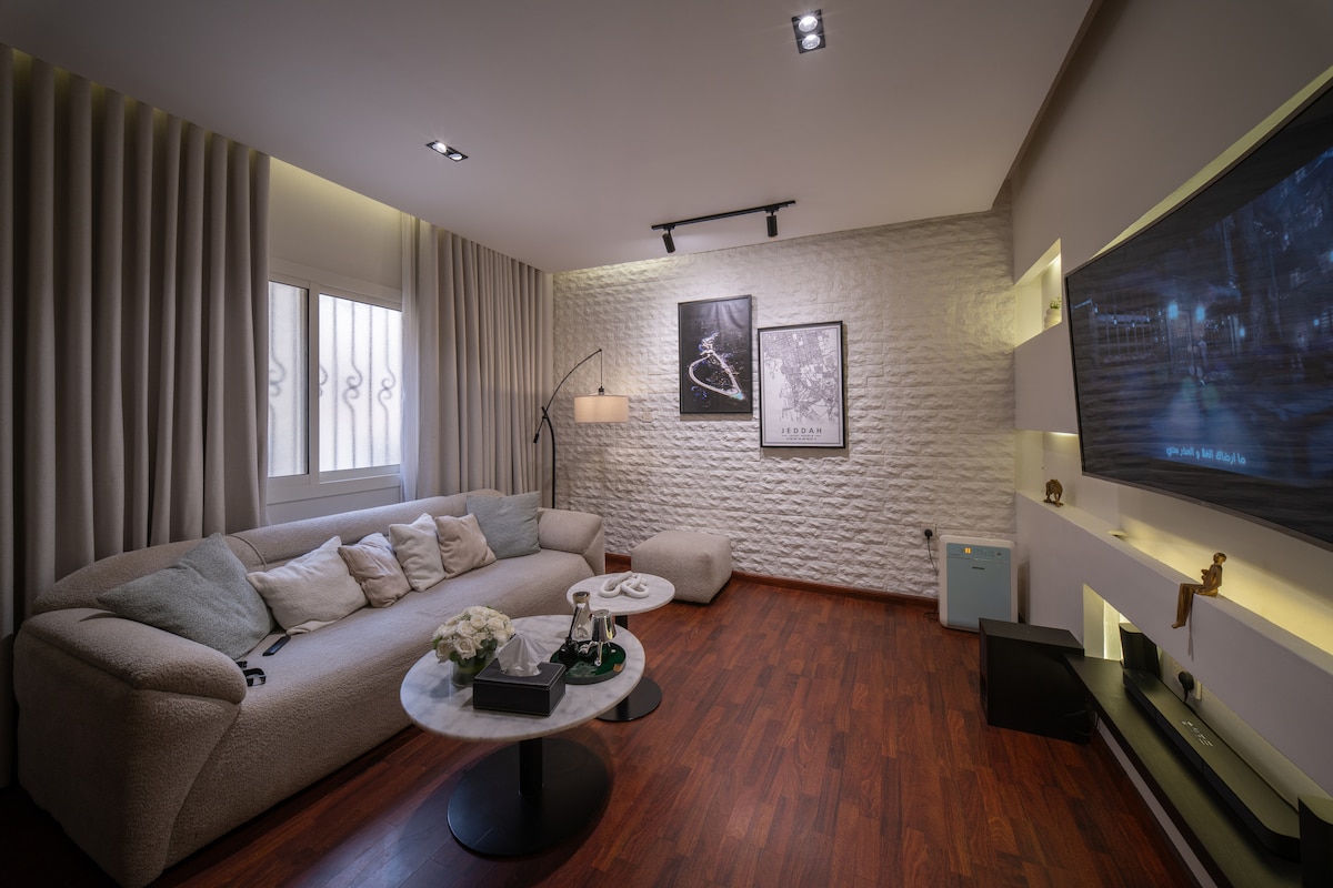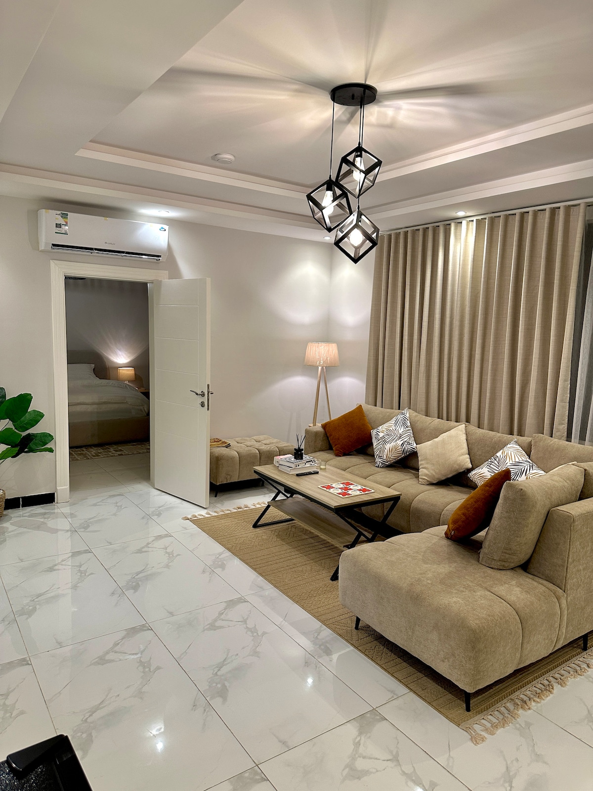 You will Enjoy a stylish experience at this centrally-located place. A modest condo downtown can be “a perfect base for exploring the city specially designed for who likes warm modern styles; The airport is 10minutes  Corniche 23 minutes Formula track 19 minutes Red sea mall 16 minutes Mall of Arabia 8 minutes. By walking Laundries 5 minutes Supermarket 5 minutes