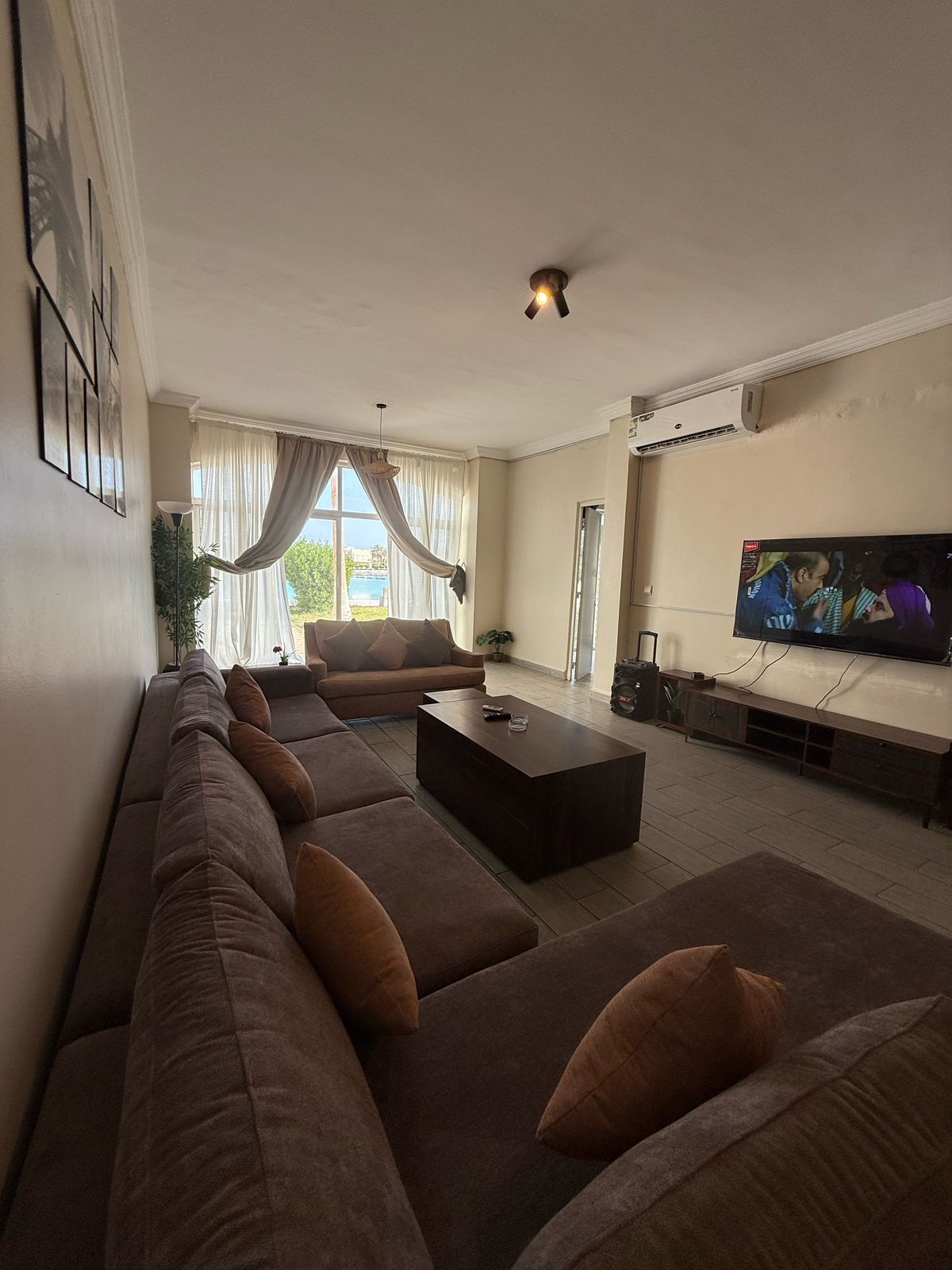 "استمتع بإقامة فاخرة على شاطئ البحر! شقة رائعة للإيجار اليومي تتميز بإطلالات خلابة على البحر من كل زاوية. تتكون الشقة من غرفتي نوم مريحتين وصالة، حيث تحتوي غرفة النوم الرئيسية على بلكونة خاصة تطل على البحر، مما يوفر لك لحظات من الاسترخاء والهدوء. والاستمتاع بالمناظر البحرية الساحرة من بلكونة الغرفة الثانية وصالة المعيشة. تتميز الشقة بالأثاث العصري والديكور الأنيق، وتضم جميع وسائل الراحة الحديثة التي تحتاجها. "لا تفوت هذه الفرصة لتجربة إقامة لا تُنسى في واحدة من أجمل المناطق على شاطئ البحر".
